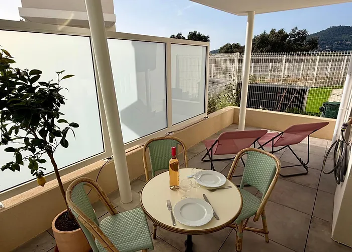 Η στάση λεωφορείου Rond Point du Grand Bleu απέχει 200 μέτρα από το New Apartment With Terrace And Private Parking Le Lavandou.